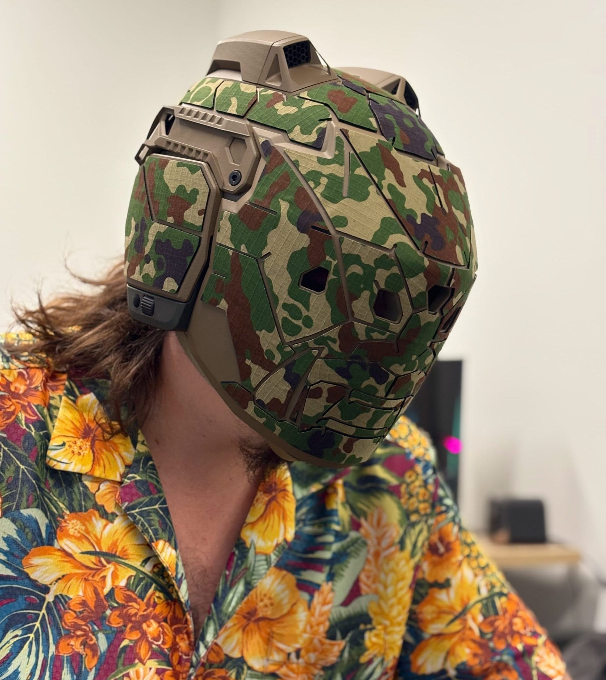 The sensor nodes integrated into the top of the helmet are purportedly referred to as “wolf ears” at Anduril, although “cat ears” might be more appropriate.