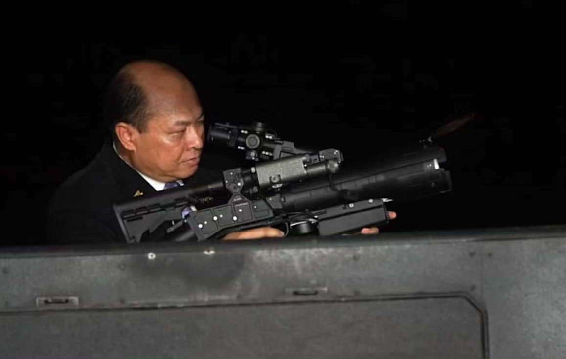 Photos posted to social media that day show Indonesian Deputy Defense Minister Donny Ermawan Taufanto and PAL Indonesia President Director Kaharuddin Djenod operating the unnamed system, which appears outfitted with rifle-style ergonomics like an AR-style grip and buttstock.