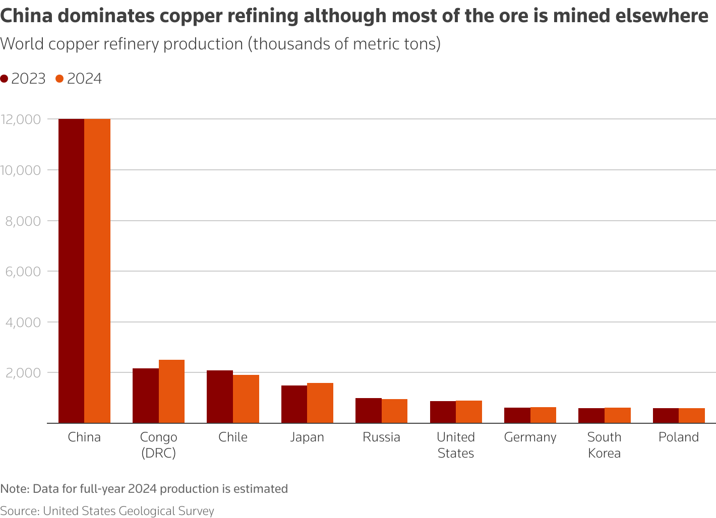 The NDIA report notes that while copper is not scarce in a geological sense for the US, which is the world’s fifth largest producer, the process of transforming copper into the refined form required for advanced defense applications is subject to industrial concentration and geopolitical pressure. As of 2022, 41% of all refined copper originated in China, partially due to the fact that Beijing possessed 14 copper smelters at the time compared to a paltry trio in the US.