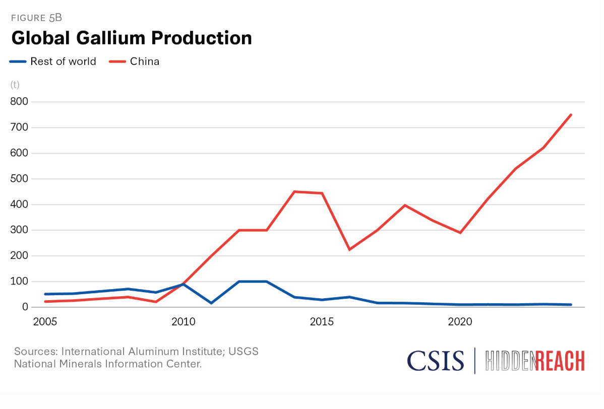Not only does the US government lack a strategic gallium stockpile, but domestic production is restricted to a single New York-based company, Indium Corp, despite the looming ban on Chinese exports to the country. However, the NDIA report does note that China’s dominance of the gallium market is a relatively recent (circa 2011) development, and that Beijing’s export controls may end up inducing past sources like Germany, Canada, and Ukraine to restart production in response.